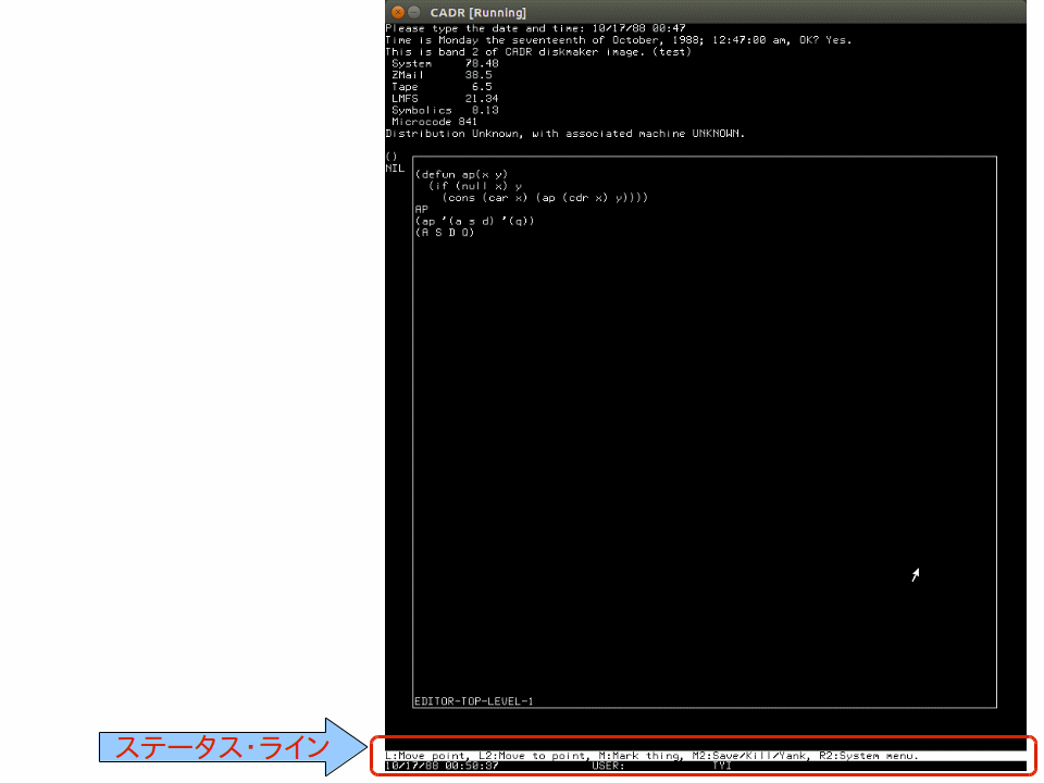 起動時から動作し、地になっている、lispリスナは、編集機能がありません。
