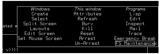 「FS Maintenance」を休止して、Lisp(Edit)や、地のLispリスナに切り替えたいときは、